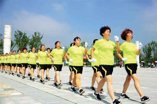 7 月17 日,“康樂健步走”團隊在忻州城區(qū)云中河景區(qū)開展“我運動,我健走,我健康,我快樂,我幸福”千人健步走活動,慶祝該團隊成立兩周年。“康樂健步走”團隊以“健康快樂”為口號,目前在全市已發(fā)展到50 余支健走隊伍。(吉建平 攝)