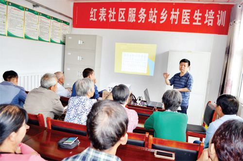 本報訊 7 月15 日,忻州市中醫(yī)院主任醫(yī)師、心病科專家張崢,來到五臺縣陽白鄉(xiāng)衛(wèi)生院紅表社區(qū)服務(wù)站,為鄉(xiāng)村醫(yī)生、村民、患者進行慢性病防治健康知識宣傳教授。課上,他向鄉(xiāng)村醫(yī)生重點講授了冠心病的分類、預(yù)防、臨床表現(xiàn),詳細介紹了高血壓、冠心病治療的臨床經(jīng)驗,受到了大家的一致好評。