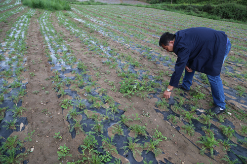 7月21日,靜樂縣堂爾上鄉(xiāng)呂呂溝村佛光合作社村民解晉才正在察看瑪咖長勢。近年來,靜樂縣積極引導(dǎo)農(nóng)民根據(jù)市場需求發(fā)展特色農(nóng)產(chǎn)品種植,先后引進(jìn)了藜麥、瑪咖、黑枸杞等特色農(nóng)產(chǎn)品,目前全縣種植38000余畝,形成了種植、采收、加工、銷售為一體的產(chǎn)業(yè)鏈,帶動(dòng)農(nóng)民增收致富。(閆曉梅 攝)