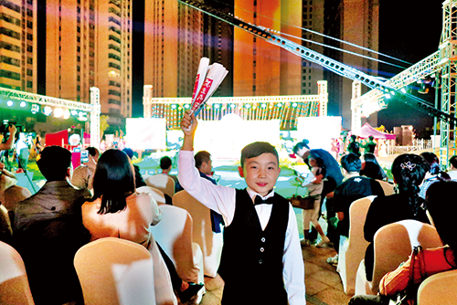 月光皎潔,清輝遍灑,這夜雖是農(nóng)歷八月十三,月亮卻已迫不及待地圓了起來。花好月圓、春花秋月、花前月下……月宮是神話中的仙境,而此時泛華酒店的后花園里也如仙境一般,琴、詩、書法共同演繹《春江花月夜》,讓現(xiàn)場的500余名觀眾如癡如醉。面容清秀、刺繡大紅旗袍在身的琴師端坐在舞臺的左側,雙手拂動,琴聲綿綿,舒心悅耳;鋪紙、執(zhí)筆、蘸墨、揮毫,舞臺中央的呂峰仿佛置身自家書房之中,墨香中三幅書法作品轉瞬完成;“醉眼看世界,朦朧看人生……李白醉了,醉了!”舞臺右側的朗誦者孫美琴將李白的一生揉碎在他的詩中,就著朦朧的月色,用獨特的聲線摻在她的情感中,沉醉了自己,也迷醉了觀眾。