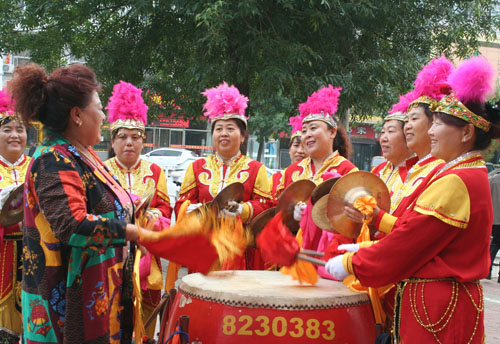 9月26日,原平市姐妹威風(fēng)鑼鼓隊(duì)的人員正在敲鑼打鼓慶豐收,進(jìn)入金秋以來。該市群眾們采取形式多樣豐富多彩的活動來慶豐收