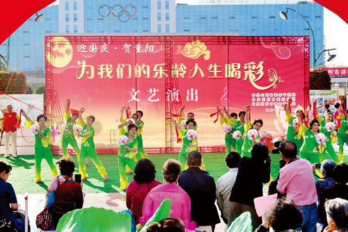 大合唱《老人真好》拉開了演出的帷幕。緊接著,由老干部們自編自演的舞蹈《琴臺(tái)古韻》、老年模特表演的《快樂(lè)老頭》、男聲合唱《夕陽(yáng)紅》、舞蹈《旗袍秀》等節(jié)目陸續(xù)登臺(tái)、精彩亮相。這些節(jié)目從不同角度反映了我市城市建設(shè)的巨大變化,歌頌了我市經(jīng)濟(jì)、社會(huì)、文化等方面的發(fā)展成就。老年人老有所樂(lè)、老有所學(xué),積極樂(lè)觀的精神風(fēng)貌,給現(xiàn)場(chǎng)觀眾帶來(lái)了歡樂(lè)和感動(dòng)。圖為演出現(xiàn)場(chǎng)。(張志遠(yuǎn) 攝)