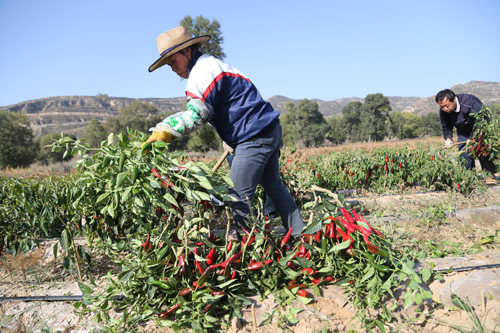 10月8日,靜樂縣永倉種植專業(yè)合作社萬畝辣椒種植示范園中10300畝辣椒喜獲豐收。近年來,該縣調(diào)整產(chǎn)業(yè)結(jié)構(gòu),大力發(fā)展無公害辣椒種植,引進(jìn)種植新品種韓國紅辣椒。該合作社今年連片訂單栽植的10300 畝辣椒目前長(zhǎng)勢(shì)良好,預(yù)計(jì)平均畝產(chǎn)6000 斤,最高可達(dá)一萬斤。今年又是一個(gè)豐產(chǎn)年,大伙的生活就像紅辣椒一樣過得紅紅火火。圖為合作社工人在收獲辣椒。(閆曉梅 攝)