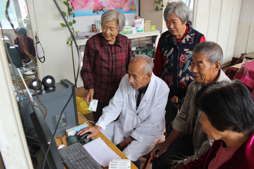 來到北義井村衛(wèi)生所,不足20平米的診療室里已經(jīng)站滿了患者。醫(yī)師張喜旺向高血壓病人李梅蘭詢問病情后又為其測量了血壓。緊接著,他打開區(qū)域衛(wèi)生信息管理平臺,拿著農村合作醫(yī)療卡在刷卡機上一刷,信息就自動提取到平臺,張喜旺結合病人病情開了電子門診處方并下藥,費用直接從農合醫(yī)療卡中扣除,整個過程不到十分鐘。張喜旺說,村民們大都都是奔著診療方便和藥品范圍內免費而來,這也大大緩解了村民看病難的問題。