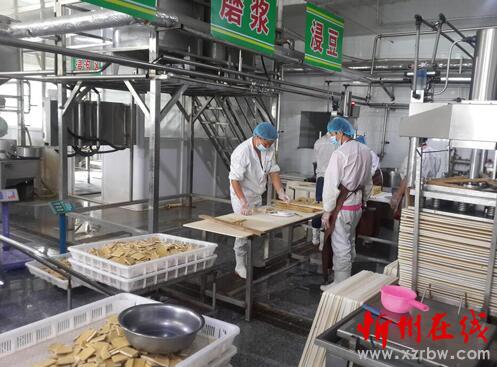 一套套全新的機械設(shè)備不停地運轉(zhuǎn),新鮮的大黃豆經(jīng)過浸泡——殺菌——磨漿——過濾——煮漿——混合——凝固——劃腦——壓制成型,透著香味的豆腐干經(jīng)過真空包裝,通過物流運往北京、太原、大同等地的超市,這是繁峙縣綠源亨通食品有限公司豆腐干生產(chǎn)線,2016年已加工500噸豆腐干,實現(xiàn)產(chǎn)值500萬元,帶動周邊上百名農(nóng)民增收。(喬偉 攝)