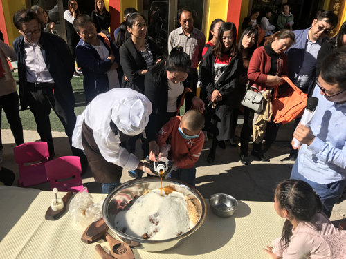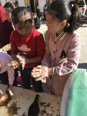 一方水土養(yǎng)一方人,一塊小餅生一地財(cái)。神池縣大人、小孩特別感恩當(dāng)?shù)卣龑?dǎo)農(nóng)民把地產(chǎn)胡油自然資源優(yōu)勢(shì)傳化為商品經(jīng)濟(jì)優(yōu)勢(shì),以月餅帶動(dòng)當(dāng)?shù)剞r(nóng)民脫貧增收發(fā)展經(jīng)濟(jì)的功勞。9月16曰,該縣一家校外語(yǔ)言培訓(xùn)機(jī)構(gòu)在金口玉言口才學(xué)校的校園里別開(kāi)生面舉辦了“迎中秋食品安全知識(shí)宣傳暨傳承神池傳統(tǒng)月餅手工戶外體驗(yàn)活動(dòng)”。此舉不僅培養(yǎng)了小孩熱愛(ài)家鄉(xiāng)的意識(shí)和感恩心理,也提高小孩熱愛(ài)勞動(dòng)的動(dòng)手能力,同時(shí)加強(qiáng)孩子們的食品安全知識(shí),受到好評(píng)。記者現(xiàn)場(chǎng)看到,家長(zhǎng)們從家里帶來(lái)了烤箱,學(xué)校準(zhǔn)備好了玫瑰、青紅絲、核桃仁、花生米、葡萄干、芝麻等餡料,孩子們你一言我一語(yǔ)討論著自己動(dòng)手做月餅的事,在觀看面點(diǎn)阿姨細(xì)致地講解與示范后,每個(gè)小朋友都躍躍欲試,體驗(yàn)親手做家鄉(xiāng)特產(chǎn)的樂(lè)趣。