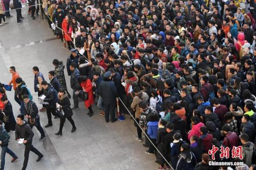 資料圖:山西太原,參加公務員考試的考生查看考場分布。 韋亮 攝