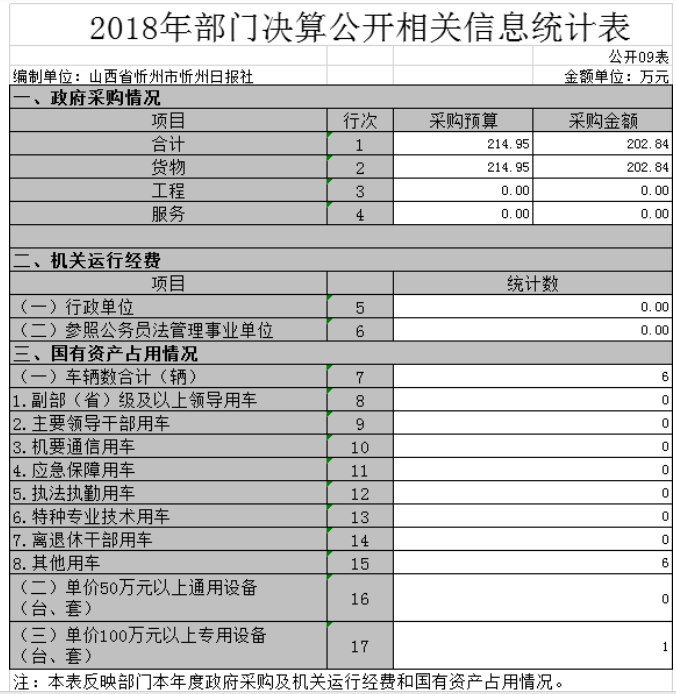 9、2018年部門決算公開相關(guān)信息統(tǒng)計(jì)表
