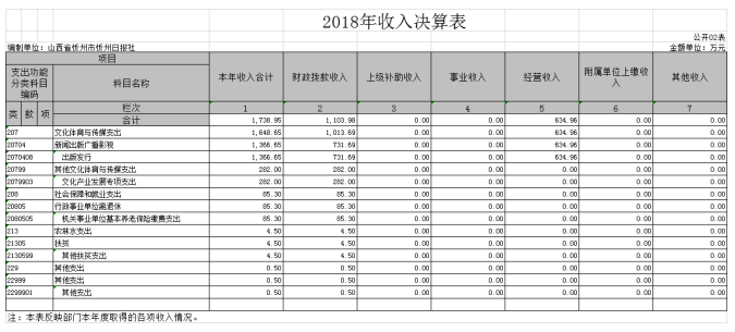 2、2018年收入決算表