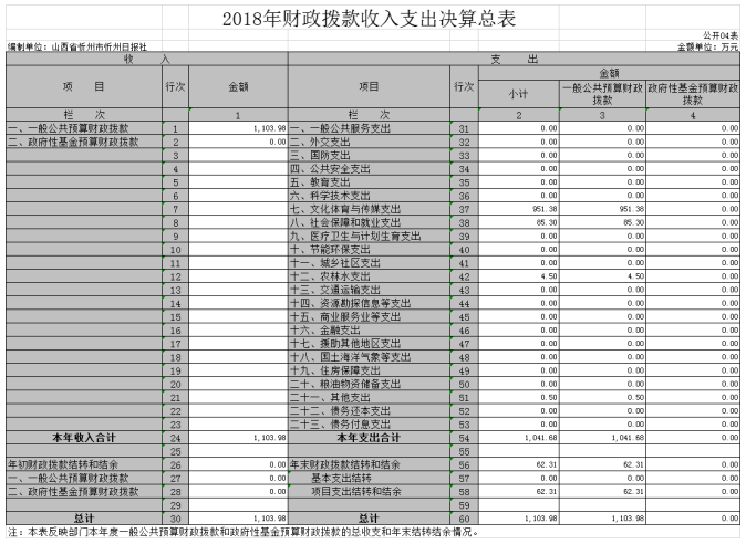 1、2018年收入支出決算總表