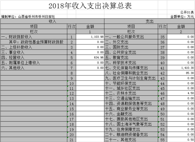 (三)部門決算單位構(gòu)成:忻州日報(bào)社是一級(jí)預(yù)算單位,無下屬單位。部門預(yù)算只有一個(gè)單位,即忻州日報(bào)社。