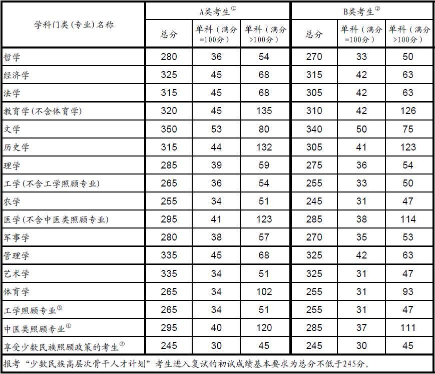 2016年全國碩士研究生招生考試考生進入復(fù)試的初試成績基本要求(專業(yè)學(xué)位類)