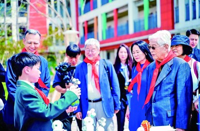 4月10日,中國科技館原館長王渝生(中)在重慶明遠(yuǎn)未來小學(xué)參加科普活動(dòng)。光明圖片