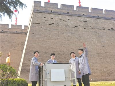 圖為蘭州大學(xué)稀有同位素前沿科學(xué)中心的核技術(shù)創(chuàng)新與產(chǎn)業(yè)化團(tuán)隊(duì),基于宇宙射線繆子成像設(shè)備對(duì)西安城墻進(jìn)行體檢。 受訪者供圖