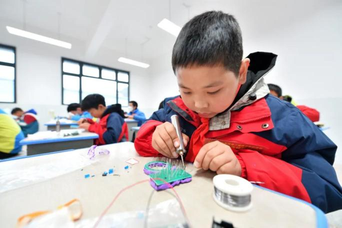 2023年12月14日,在湖北省襄陽市保康縣后坪鎮(zhèn)中心學校,學生們參加電子制作競賽。通訊員 楊韜 黃玲 攝
