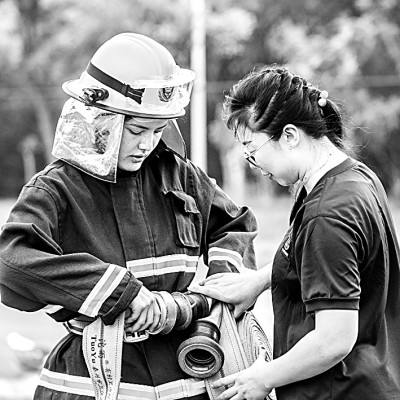 重慶電訊職業(yè)學(xué)院建筑消防專業(yè)(三年制)大二學(xué)生在輔導(dǎo)員指導(dǎo)下進行訓(xùn)練。新華社發(fā)