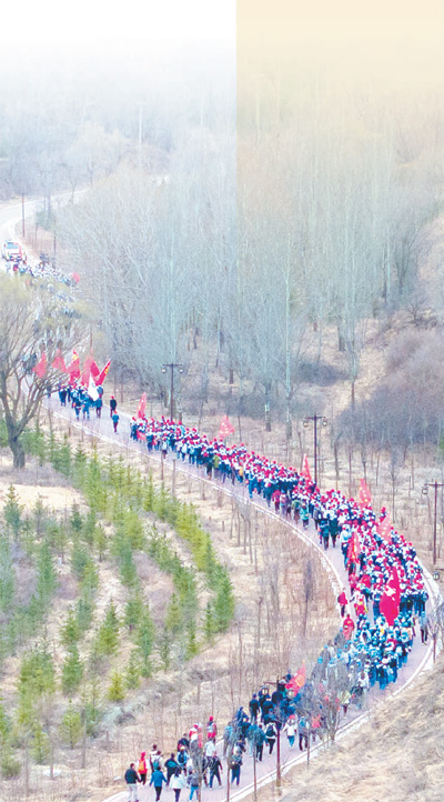 寧夏回族自治區(qū)固原市第二中學(xué)和弘文中學(xué)師生徒步前往彭陽縣任山河烈士陵園,緬懷革命先烈。陳佳文攝