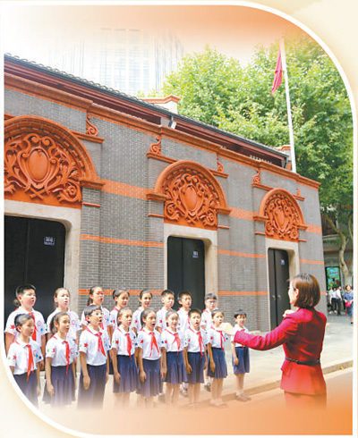中共一大會(huì)址,上海市的小學(xué)生在老師指揮下齊唱《沒有共產(chǎn)黨就沒有新中國(guó)》。陳亞東攝