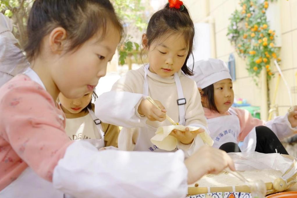 烙餅、包餃子、蒸窩窩頭……近期,江蘇省徐州市徐海路幼兒園的勞動教育活動走紅網(wǎng)絡(luò)。孩子們做起飯來全神貫注,手法有模有樣,受到眾多網(wǎng)民的點贊追捧,甚至有外省家長帶孩子前來咨詢?nèi)雸@。