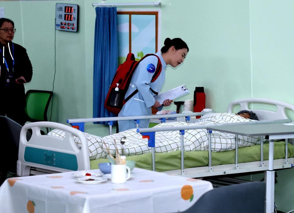 5月8日,第二屆全國鄉(xiāng)村振興職業(yè)技能大賽養(yǎng)老護理項目比賽現(xiàn)場。新華社記者 陶亮 攝