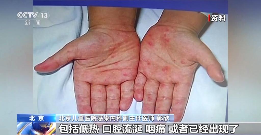 北京兒童醫(yī)院感染內(nèi)科副主任醫(yī)師 郭欣:通過一些蛛絲馬跡來早期發(fā)現(xiàn),可以去仔細(xì)觀察孩子的口腔、皮膚的黏膜,通常典型的癥狀就是累及手部、腳部,還有孩子的小屁屁上,可能會(huì)出現(xiàn)小紅點(diǎn)。在潛伏期3—5天之后,孩子可能早期會(huì)出現(xiàn)一些包括低熱、口腔流涎、咽痛,或者已經(jīng)出現(xiàn)了手足或者臀部的這種皮疹,這樣如果出現(xiàn)這樣的癥狀,家長就一定要注意孩子可能罹患了手足口病。