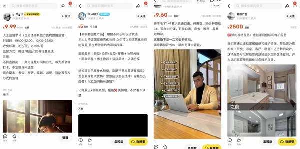 據(jù)統(tǒng)計(jì),大賽共吸引超過(guò)100名學(xué)生參與,在二手交易平臺(tái)閑魚掛出“特色商品”近500個(gè),且9成商品均為“0成本”商品,如“跑腿類”的代取快遞、食堂帶飯,“監(jiān)督類”的期末復(fù)習(xí)監(jiān)督、考研搭子等。也有不少同學(xué)發(fā)掘了自己“技能”的價(jià)值,如粵語(yǔ)教學(xué)、彈吉他教學(xué)、魔術(shù)教學(xué)等特長(zhǎng)類商品,掛出超過(guò)60個(gè),累計(jì)咨詢量超過(guò)100次,成交量超過(guò)20單。