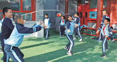 北京市東城區(qū)黑芝麻胡同小學圓恩寺校區(qū)位于一條胡同里,空間略顯局促。學校發(fā)布了“課間活動征集令”,把課間15分鐘交給學生自己設計和策劃?!熬幓ɑ@3個人就能玩,不占地方”“可以觀察、養(yǎng)護池塘邊的植物”“華容道、九連環(huán)”……學生們紛紛為課間活動支招。