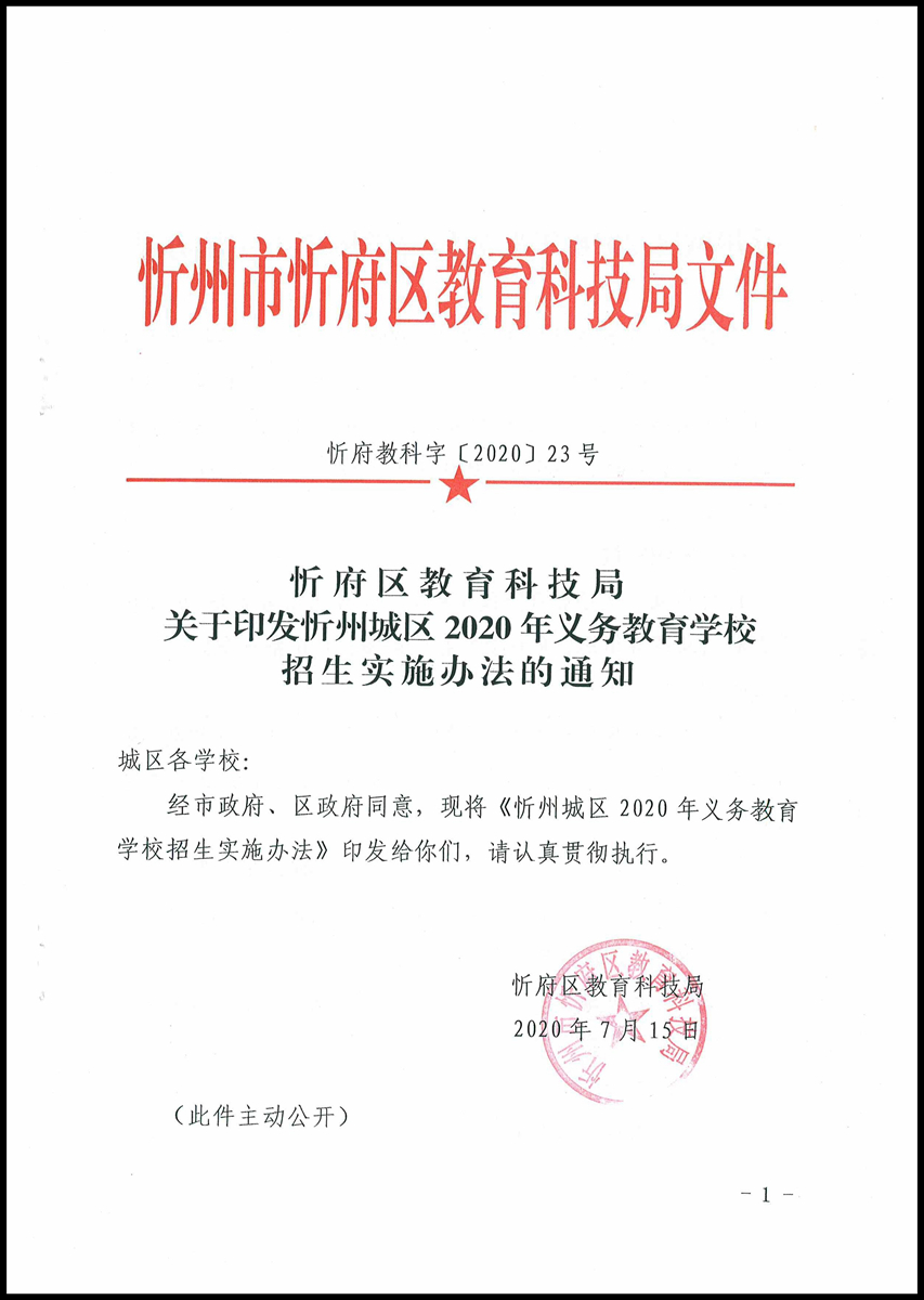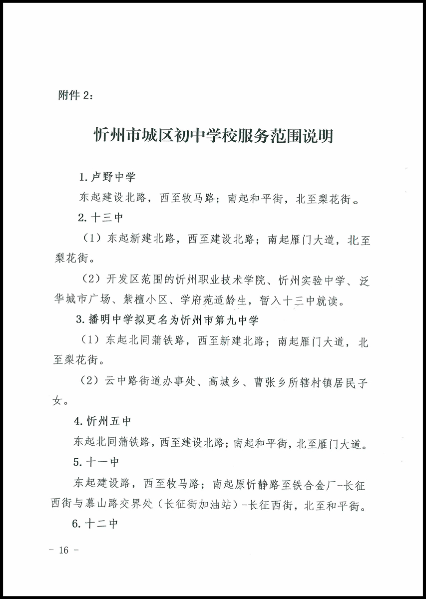 忻府區(qū)2020年最新學(xué)區(qū)劃分及招生信息公布
