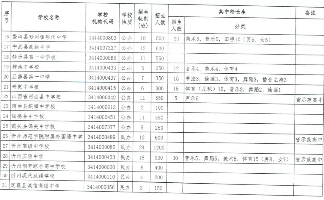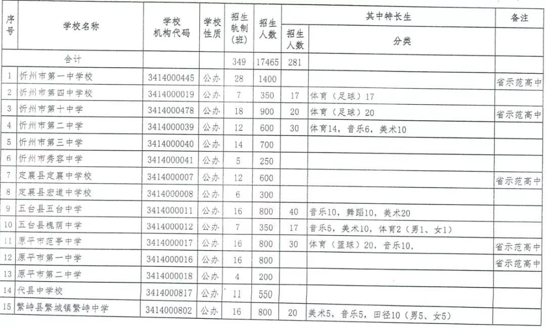 附件:1.忻州市2020年普通高中學校分校招生計劃
