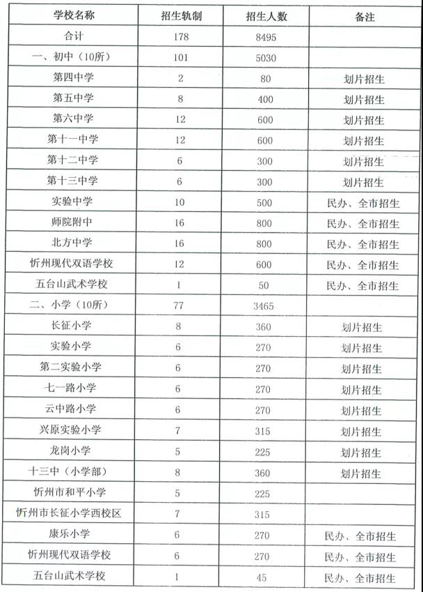 4.忻州市2020年市直義務(wù)教育階段學校招生計劃