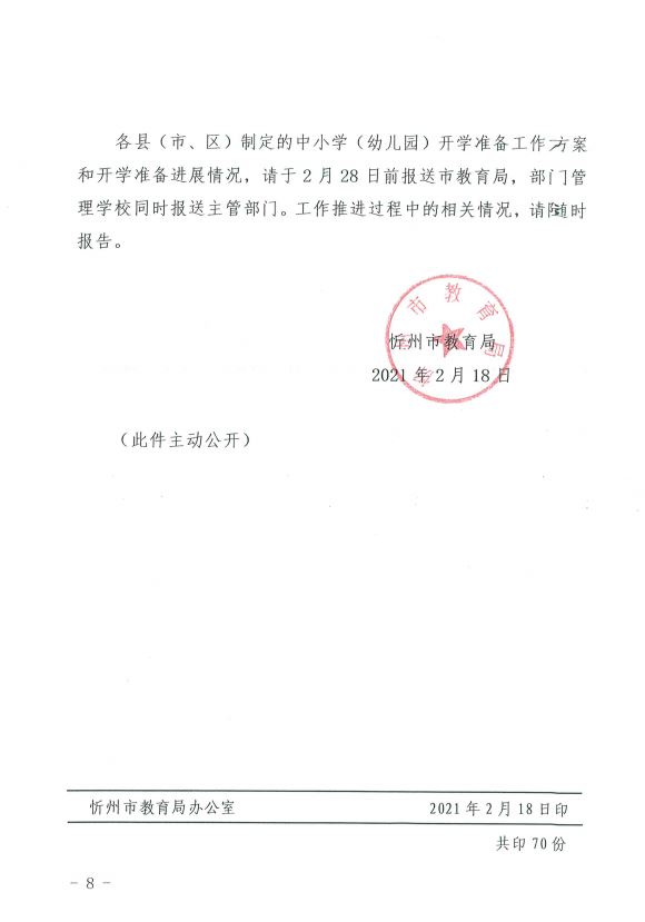 忻州市教育局關(guān)于做好2021年中小學(xué)開(kāi)學(xué)準(zhǔn)備工作的通知