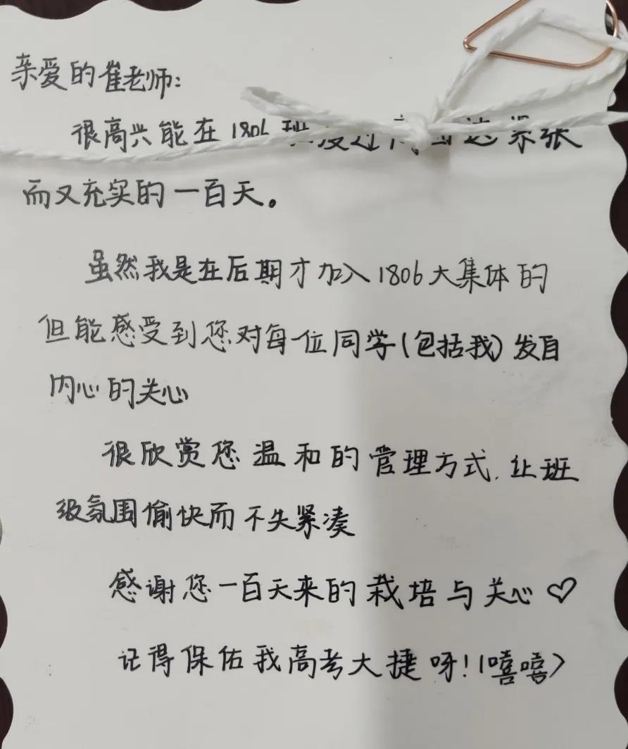 三年來,老師們起早貪黑陪伴,宿管“媽媽”無微不至地關心照顧,餐廳工作人員在油煙和高溫的環(huán)境中提供一日三餐。在離別之際,同學們?yōu)樗麄儷I上了一束束鮮花,留下了一封封感恩的信——感謝他們的精心培養(yǎng)、辛勤勞動和熱情服務。