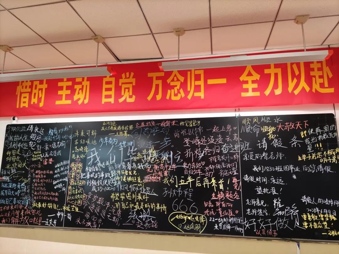 同學們還在黑板上留下祝福,用自己的親身經(jīng)歷寄語學弟學妹,希望他們堅持夢想,在最美好的青春歲月敢于拼搏,超越自我,逐夢未來。