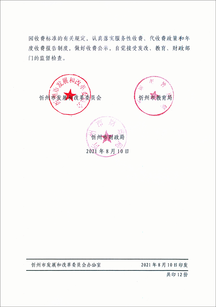 關(guān)于調(diào)整忻州市幼兒園和實驗幼兒園保育教育費收費標準的通知