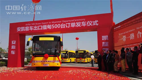 在“一帶一路”的大背景下,憑借以“技術(shù)、品質(zhì)、商業(yè)模式”構(gòu)筑的品牌競爭力,安凱客車脫穎而出成為中國優(yōu)秀品牌在緬甸展示“中國制造”風采的榮耀代表。4月11日,安凱客車與仰光公共巴士有限公司簽署了500臺 10.5米安凱牌天然氣公交車采購協(xié)議,合同金額2800 萬美元(約合人民幣1.93 億元)。