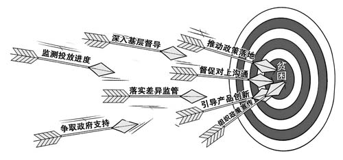 在召開金融扶貧工作匯報(bào)會(huì)、促進(jìn)會(huì)督促推動(dòng)的基礎(chǔ)上,分局領(lǐng)導(dǎo)經(jīng)常深入相關(guān)銀行業(yè)機(jī)構(gòu)調(diào)研指導(dǎo)、現(xiàn)場(chǎng)督導(dǎo),督促其全面落實(shí)扶貧小額信貸按鄉(xiāng)鎮(zhèn)包干責(zé)任制,摸清包干鄉(xiāng)鎮(zhèn)建檔立卡貧困戶貸款需求,做到應(yīng)貸盡貸。督促機(jī)構(gòu)認(rèn)真落實(shí)“五位一體”扶貧工作要求,確保相關(guān)政策落實(shí)兌現(xiàn)。根據(jù)自身職責(zé)定位和業(yè)務(wù)特點(diǎn),共同研究扶貧模式,研討扶貧產(chǎn)品,開展特色扶貧業(yè)務(wù)。