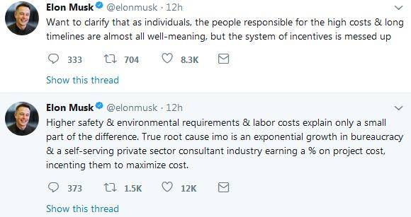 馬斯克還對美國的基建行業(yè)現(xiàn)狀做出了自己的看法。他表示,安全、環(huán)保、人力只是一小部分因素,官僚體系和以利益最大化為目標的私企們,才是造成美國基建落后的“罪魁禍首”。