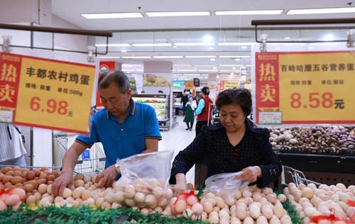 4月11日,市民在重慶市沙坪壩區(qū)一家超市內(nèi)選購雞蛋。新華社記者王全超攝