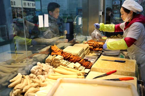 4月11日,市民在江蘇連云港市連云區(qū)一市場選購豆制品。新華社發(fā)(王春攝)