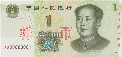 1元紙幣,正面左側(cè)增加面額數(shù)字白水印,取消左下角裝飾紋樣。