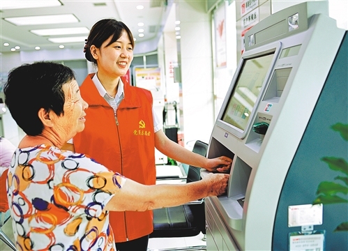 湖南邵陽農(nóng)商銀行黨員志愿者向客戶介紹銀行查詢機使用方法。滕治中攝(中經(jīng)視覺)