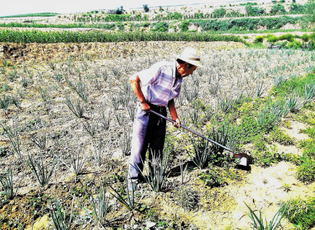 8月18日,河曲縣舊縣鄉(xiāng)楊家窊村村民劉官達正在紅蔥地里鋤草。近年來,該村充分利用產業(yè)扶貧資金扶持發(fā)展特色紅蔥種植,打造“一村一品”主導產業(yè),有效增加農民收入,鞏固脫貧成果。賈金理 攝