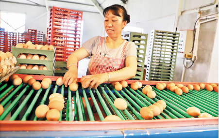 原平農(nóng)商行積極開展“三大四掃五進(jìn)”活動,讓普惠金融的觸角向鄉(xiāng)村不斷延伸,精準(zhǔn)對接縣域種養(yǎng)大戶,支持種養(yǎng)業(yè)發(fā)展。今年,該行為原平市興崞養(yǎng)殖專業(yè)合作社提供400萬元信貸資金,解決了企業(yè)流動資金不足的問題。圖為專業(yè)合作社的工人在車間分撿雞蛋。趙 鴻 攝