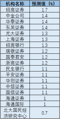 十八家機(jī)構(gòu)預(yù)測6月份CPI同比漲幅。制圖:楊曦