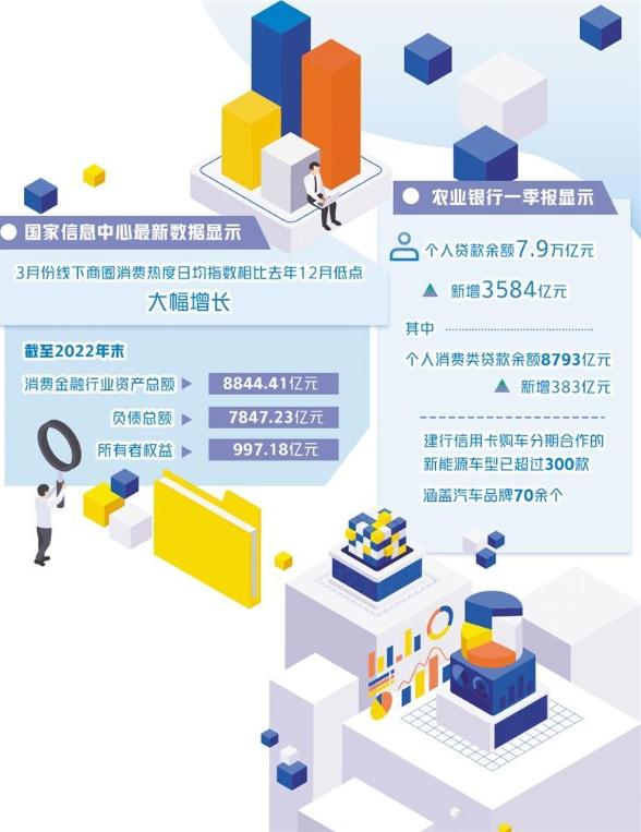 一季度以來(lái),我國(guó)消費(fèi)復(fù)蘇按下“快進(jìn)鍵”,消費(fèi)信貸投放和惠民力度相較去年不斷加大。農(nóng)業(yè)銀行今年一季報(bào)顯示,擴(kuò)投資促消費(fèi)力度持續(xù)加大。在促消費(fèi)方面,個(gè)人貸款余額7.9萬(wàn)億元,新增3584億元。其中,個(gè)人消費(fèi)類(lèi)貸款余額8793億元,新增383億元。此外,郵儲(chǔ)銀行在今年5月份開(kāi)展“讓美好發(fā)生”活動(dòng),推出個(gè)人額度類(lèi)消費(fèi)貸款系列產(chǎn)品“郵享貸”,首次通過(guò)郵儲(chǔ)銀行APP完成“郵享貸”首筆支用1萬(wàn)元以上的用戶,有機(jī)會(huì)獲得美團(tuán)外賣(mài)代金券等禮品。