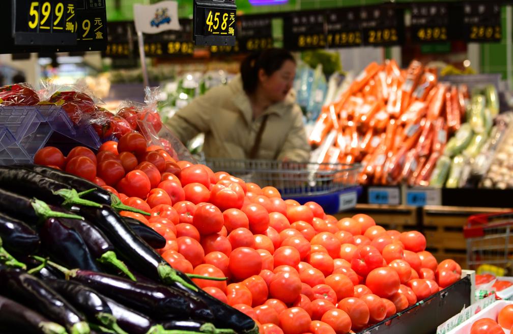 消費(fèi)者在江蘇省無錫市一家超市里選購(gòu)蔬菜(3月9日攝)。新華社發(fā)(還月亮攝)