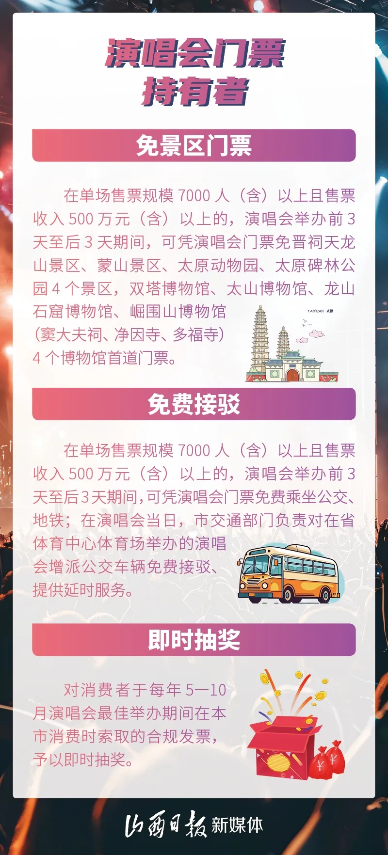 為做大太原市演唱會經(jīng)濟,加快建設華北地區(qū)重要演藝中心,打造“國內(nèi)外重要文化旅游目的地”,日前,太原市發(fā)展和改革委、市文化和旅游局、市財政局等11個部門聯(lián)合制定出臺《支持演唱會經(jīng)濟發(fā)展的若干措施(試行)》。