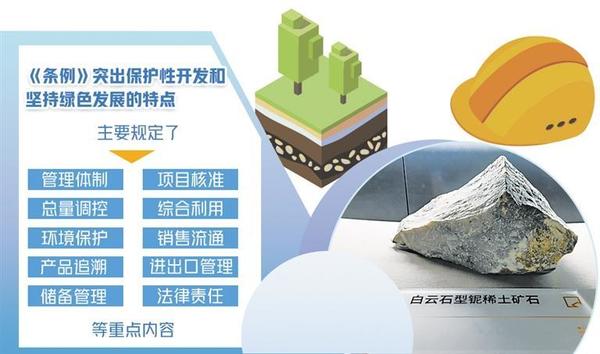 《稀土管理?xiàng)l例》(以下簡稱《條例》)日前公布,自2024年10月1日起施行?!稐l例》明確,稀土資源屬于國家所有,國家依法加強(qiáng)對稀土資源的保護(hù),對稀土資源實(shí)行保護(hù)性開采。同時(shí),鼓勵(lì)和支持稀土產(chǎn)業(yè)新技術(shù)、新工藝、新產(chǎn)品、新材料、新裝備的研發(fā)和應(yīng)用,持續(xù)提升稀土資源開發(fā)利用水平,推動稀土產(chǎn)業(yè)高端化、智能化、綠色化發(fā)展。專家認(rèn)為,《條例》首次以行政立法形式規(guī)范稀土資源的開發(fā)利用,主要規(guī)定了管理體制、項(xiàng)目核準(zhǔn)、總量調(diào)控、綜合利用、環(huán)境保護(hù)、銷售流通、產(chǎn)品追溯、進(jìn)出口管理、儲備管理、法律責(zé)任等重點(diǎn)內(nèi)容,突出了保護(hù)性開發(fā)和堅(jiān)持綠色發(fā)展的特點(diǎn),對推動稀土產(chǎn)業(yè)高質(zhì)量發(fā)展具有重大意義。規(guī)范稀土資源開發(fā)利用稀土是現(xiàn)代工業(yè)中不可或缺的重要元素和關(guān)鍵戰(zhàn)略資源。中國有色金屬工業(yè)協(xié)會黨委書記、會長葛紅林表示,稀土被譽(yù)為“工業(yè)維生素”,是高新技術(shù)產(chǎn)業(yè)和國防科技工業(yè)的關(guān)鍵原料,是關(guān)系國家安全和國民經(jīng)濟(jì)命脈的戰(zhàn)略資源,對推動新型工業(yè)化發(fā)展具有不可替代性。中國稀土集團(tuán)黨委書記、董事長敖宏介紹,稀土是改造提升傳統(tǒng)產(chǎn)業(yè)、發(fā)展戰(zhàn)略性新興產(chǎn)業(yè)和國防科技工業(yè)不可或缺的關(guān)鍵材料。隨著新能源汽車、風(fēng)力發(fā)電、智能制造等戰(zhàn)略性新興產(chǎn)業(yè)和節(jié)能電機(jī)等傳統(tǒng)產(chǎn)業(yè)改造升級,全球稀土需求快速增加。近年來,我國圍繞稀土行業(yè)準(zhǔn)入標(biāo)準(zhǔn)、行業(yè)整合、環(huán)境保護(hù)等方面出臺了多項(xiàng)政策措施,產(chǎn)業(yè)發(fā)展良好,帶動建立起相對完整的產(chǎn)業(yè)體系,資源儲量、產(chǎn)量、消費(fèi)量、貿(mào)易量均居世界第一位,并持續(xù)加強(qiáng)稀土資源保護(hù)開發(fā)和合理利用,為科技進(jìn)步和經(jīng)濟(jì)社會發(fā)展作出了突出貢獻(xiàn)。瞄準(zhǔn)新一輪科技革命和產(chǎn)業(yè)變革方向,我國加快稀土供給側(cè)結(jié)構(gòu)性改革,不斷開辟發(fā)展新領(lǐng)域新賽道、塑造發(fā)展新動能新優(yōu)勢,產(chǎn)業(yè)鏈不斷完善,產(chǎn)業(yè)規(guī)模不斷擴(kuò)大,產(chǎn)品品種不斷豐富,產(chǎn)品質(zhì)量不斷提高,市場規(guī)模不斷擴(kuò)大,國際影響力持續(xù)提升。但稀土管理仍存在一些突出問題,包括覆蓋全產(chǎn)業(yè)鏈的管理職責(zé)、監(jiān)管措施有待完善,產(chǎn)業(yè)創(chuàng)新能力和綠色化智能化水平亟需提高,行業(yè)秩序需要進(jìn)一步規(guī)范,整治非法開采或非法冶煉分離、無指標(biāo)或超指標(biāo)生產(chǎn)、買賣非法稀土產(chǎn)品等違法行為的手段不足、處罰力度不夠。隨著行業(yè)的不斷發(fā)展,產(chǎn)業(yè)鏈條的持續(xù)延伸,稀土產(chǎn)業(yè)缺少綜合性法律法規(guī)的問題日益凸顯,難以滿足行業(yè)高質(zhì)量發(fā)展需求。稀土行業(yè)涵蓋開采、冶煉分離、產(chǎn)品流通、二次利用、進(jìn)出口以及儲備等諸多環(huán)節(jié),涉及中央政府多個(gè)管理部門,亟需依法建立分工明確、密切配合的管理體制。葛紅林認(rèn)為,稀土產(chǎn)業(yè)大而不強(qiáng)、全而不精的問題依然存在,在制度保障銜接、資源保護(hù)性開發(fā)、原始基礎(chǔ)創(chuàng)新、行業(yè)秩序規(guī)范等方面仍面臨一些困難和挑戰(zhàn)?!疤貏e是在工藝綠色化、產(chǎn)品高端化、制造智能化方面有待提升,產(chǎn)業(yè)結(jié)構(gòu)要持續(xù)優(yōu)化,產(chǎn)業(yè)秩序需要進(jìn)一步規(guī)范?!卑胶暾f。推進(jìn)產(chǎn)業(yè)轉(zhuǎn)型升級包鋼(集團(tuán))公司黨委常委、副總經(jīng)理兼北方稀土黨委書記、董事長劉培勛認(rèn)為,《條例》為解決制約產(chǎn)業(yè)高質(zhì)量發(fā)展的堵點(diǎn)、難點(diǎn)開出了法治良方。完善了生態(tài)環(huán)境保護(hù)、資源儲備的有關(guān)規(guī)定,形成了更加科學(xué)有效的管理方式,更有利于稀土資源的保護(hù)性開發(fā);明確提出國家鼓勵(lì)科技創(chuàng)新和人才培養(yǎng),支持稀土新產(chǎn)品、新材料、新工藝的研發(fā)和產(chǎn)業(yè)化,更有利于稀土資源的高質(zhì)化利用;建立起從國家到地方再到企業(yè)分層管理、各司其職、各負(fù)其責(zé)的治理體系,并首次對違法違規(guī)行為設(shè)定處罰標(biāo)準(zhǔn),進(jìn)一步加壓引導(dǎo)行業(yè)秩序整頓,更有利于行業(yè)規(guī)范化管理?!稐l例》致力于促進(jìn)稀土產(chǎn)業(yè)高質(zhì)量發(fā)展。工業(yè)和信息化部原材料工業(yè)司相關(guān)負(fù)責(zé)人解讀,國家對稀土產(chǎn)業(yè)發(fā)展實(shí)行統(tǒng)一規(guī)劃,并突出科技創(chuàng)新。鼓勵(lì)和支持稀土產(chǎn)業(yè)新技術(shù)、新工藝、新產(chǎn)品、新材料、新裝備的研發(fā)和應(yīng)用。鼓勵(lì)和支持企業(yè)利用先進(jìn)適用技術(shù)、工藝對稀土二次資源進(jìn)行綜合利用。同時(shí),實(shí)現(xiàn)綠色發(fā)展、安全生產(chǎn)。從事