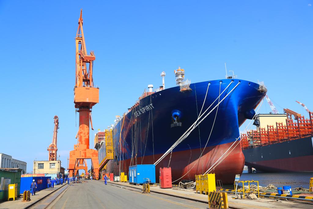 6月15日,在中國船舶集團(tuán)大連船舶重工集團(tuán)有限公司拍攝的正在建造的大型液化天然氣(LNG)運(yùn)輸船。新華社記者楊青 攝