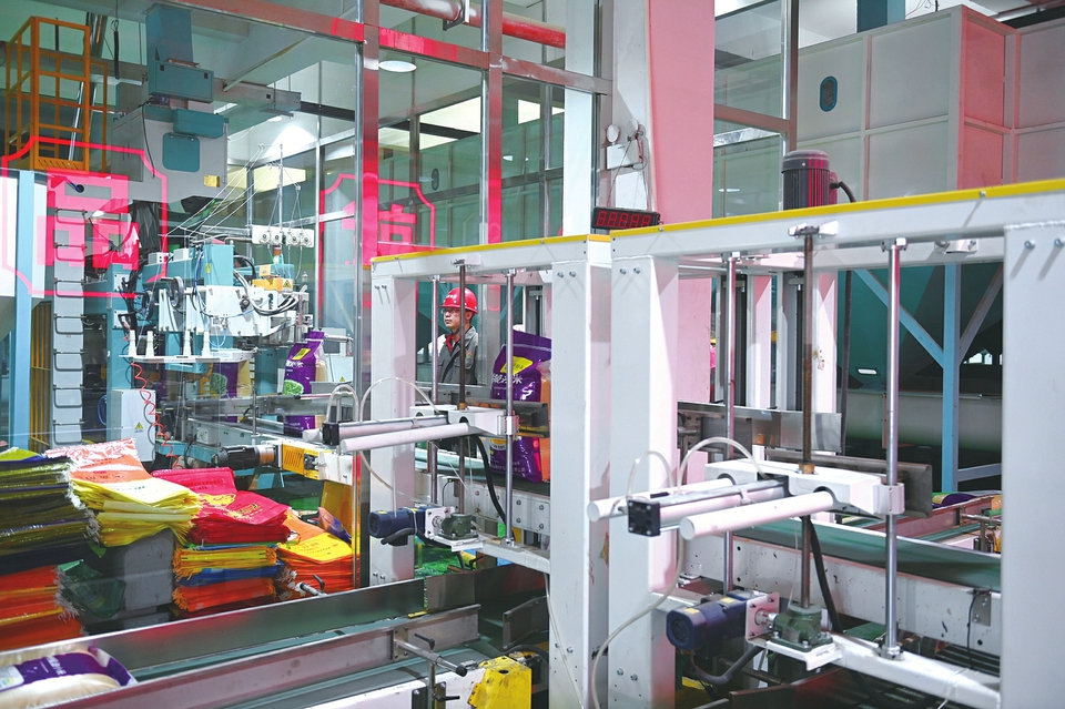 9月5日,五寨縣雜糧產(chǎn)業(yè)園內(nèi),工作人員正用全自動生產(chǎn)線裝運雜糧。該產(chǎn)業(yè)園是集農(nóng)產(chǎn)品生產(chǎn)、加工、倉儲、物流、市場營銷、品牌建設于一體的農(nóng)產(chǎn)品精深加工產(chǎn)業(yè)園,實現(xiàn)年銷售收入14.6億元。